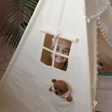 This play teepee tent has been an amazing purchase for my kids. they spend so much time in it, reading books, playing games, and even taking naps. the setup was quick and easy, and the materials are very durable. the fabric is soft and has a beautiful design that fits perfectly with their room decor. the wooden poles are strong and keep the tent stable. it’s spacious enough for them to play comfortably with their toys inside. the window is a nice touch, allowing them to peek out and have more fun. it’s also lightweight and easy to move around if needed. i’m really happy with this purchase and love seeing how much joy it brings to my children. highly recommend it to other parents.