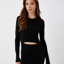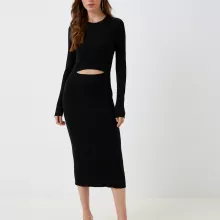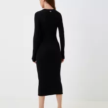 This Diesel dress is made with a carefully chosen fabric blend that ensures softness, breathability, and a touch of structure. The combination of wool, viscose, and polyester keeps it warm yet lightweight, making it ideal for cooler days without feeling heavy. The classic black color adds depth and elegance, allowing it to be paired with a variety of accessories for endless outfit possibilities.