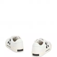Crafted with a high-quality 100% cotton upper, these sneakers offer a breathable, soft feel, making them ideal for all-day wear. The sturdy rubber sole ensures durability, while the flat design provides the perfect balance between support and comfort. A distinctive zipper tie tag adds a touch of rebellious flair to the design, while the contrasting logo on the heel completes the look with a subtle but bold branding statement.