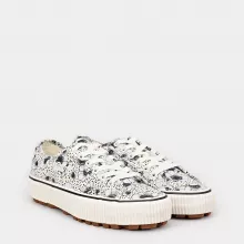Step Out in Style with Vans Women’s White Floral Leather Sneakers!