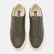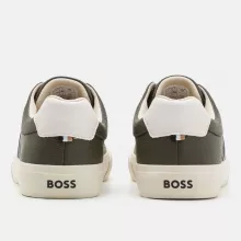 Step Out in Style with Boss Men’s Green Leather Sneakers!