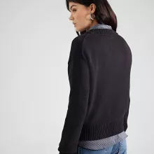 This knitwear is designed to deliver both comfort and style. The black color provides a sleek, classic appearance that pairs easily with any outfit. The long sleeves offer added warmth and coverage, while the V-neck design enhances your silhouette with a touch of femininity. Made from 100% cotton, it ensures durability and lasting softness with every wear. Plus, it is easy to care for with machine wash at 86°F, making it a practical choice for everyday use.