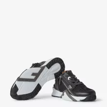 Crafted with attention to detail, these sneakers feature a sleek black FF jacquard nylon fabric, paired with black leather and gray suede accents for a refined look. The slip-on design, enhanced with elastic laces and a convenient side zipper, offers a perfect fit, while the distinctive corrugated sole provides exceptional grip and comfort. The white rubber soles are subtly highlighted with a gray diagonal F detail, adding a modern touch to the classic silhouette.