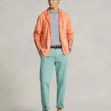 Elevate your casual style with the Polo Ralph Lauren Men’s Orange Zip-Up Hoodie Sweatshirt. Designed for the modern man who appreciates both comfort and fashion, this vibrant hoodie offers a perfect balance of warmth and breathability. Crafted from 100% soft cotton, it’s perfect for the mild temperatures of spring and summer, making it an essential piece for your wardrobe.